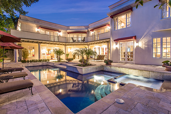 This Villa style 5-bedroom, 7.5-bath home has it all. Wonderful curb appeal with traditional details in every room. Custom built-ins, crown molding, 5 fireplaces, and designer lighting.